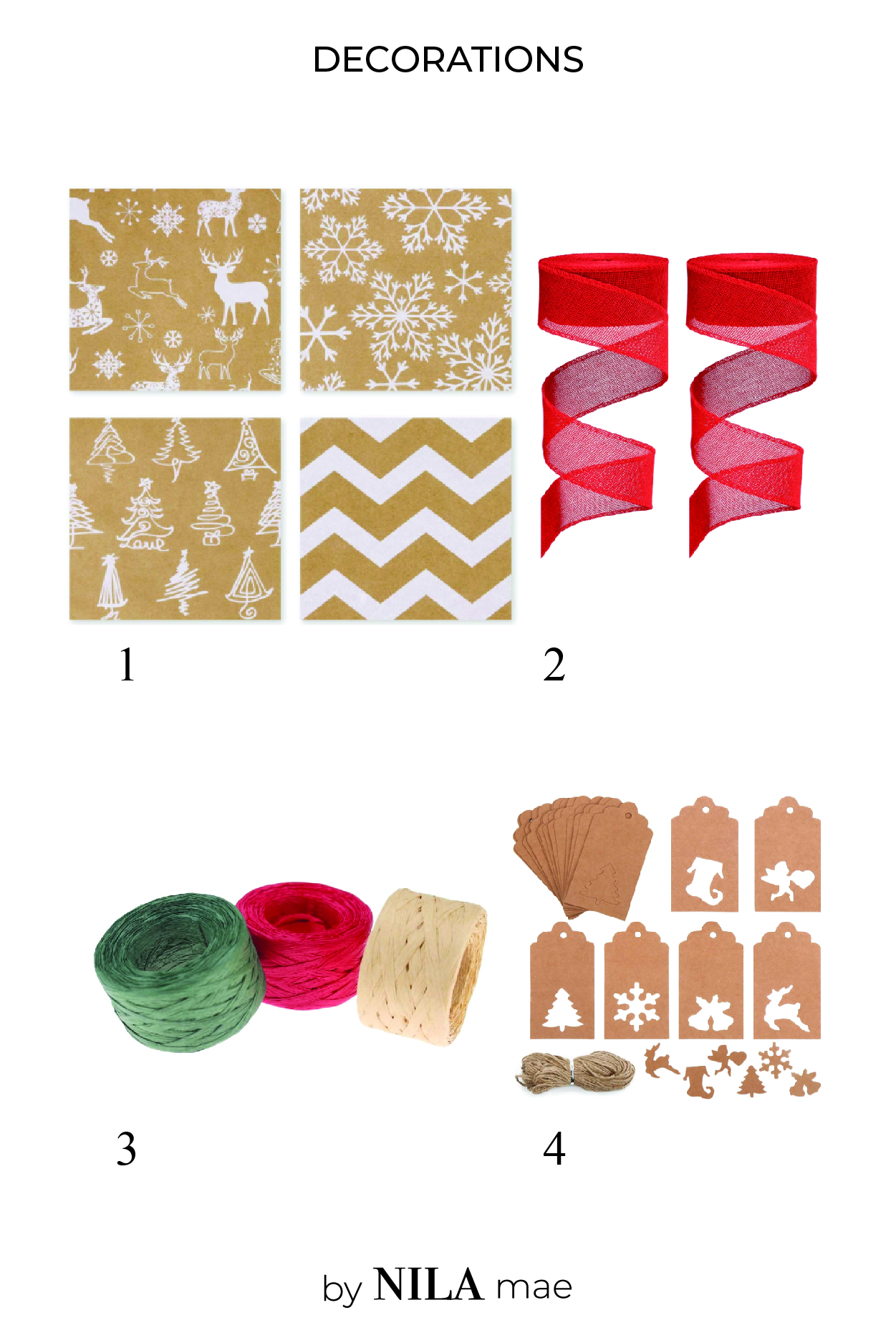 I love how she wrapped her Christmas gifts this year. Just in case you do too, here are the links to the decoration items she used!